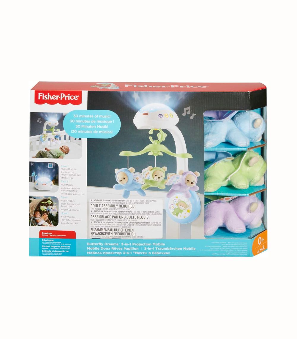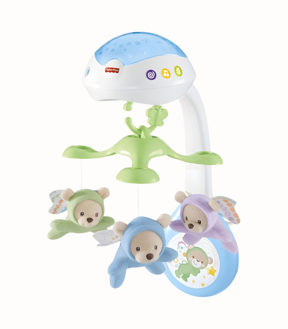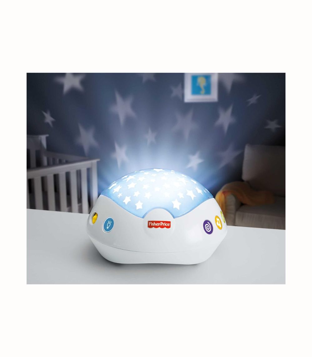 Babyprojektor Mobil med Stjärnljus och Musik som projicerar en lugnande stjärnhimmel och spelar vaggvisor för snabbare insomning.