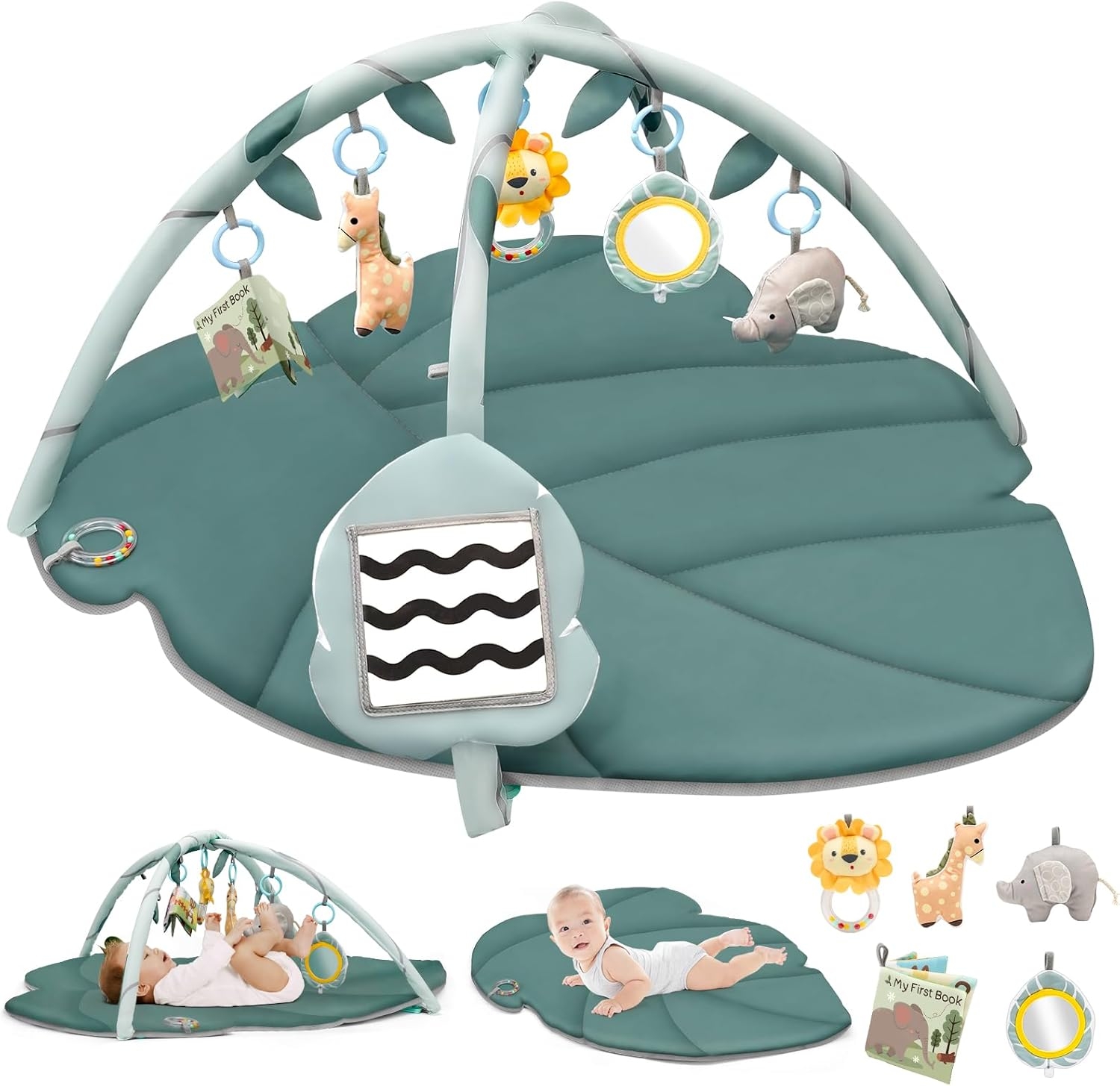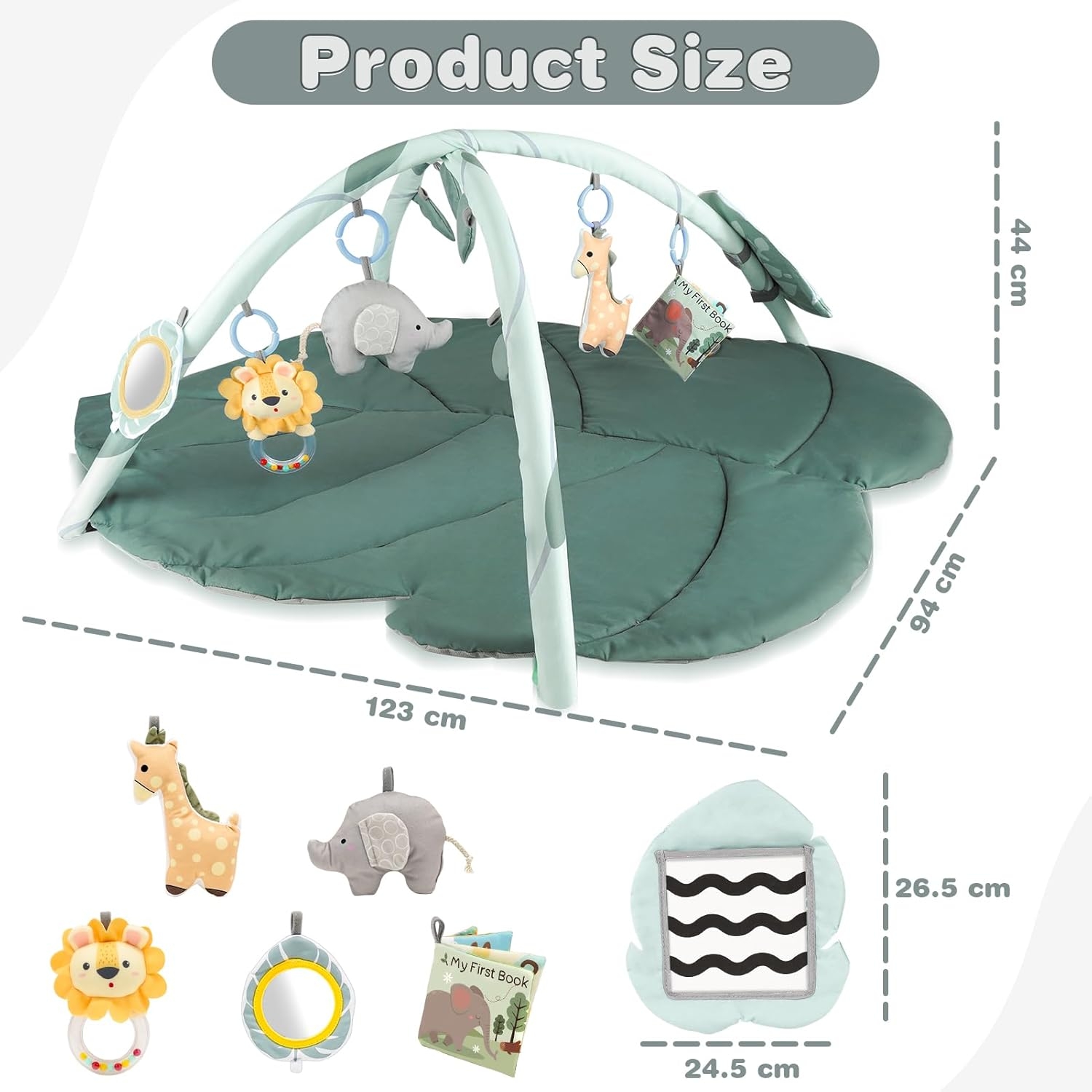 | Leksaker inkluderar | Spegel, tygbok, pipleksak, svartvita kort, taktila djur |