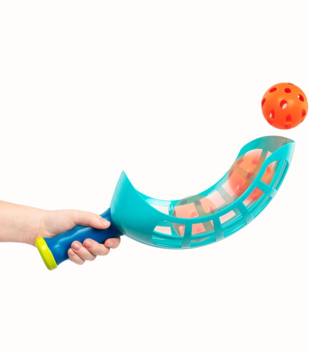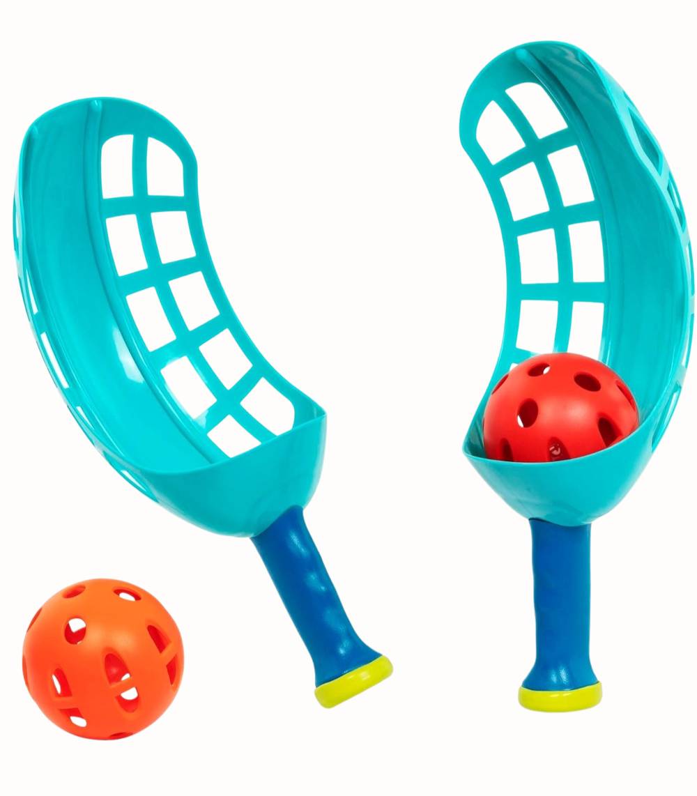 Njut av klassisk utomhuslek med detta boll lekset från Battat. Setet innehåller två skopor och två bollar för rolig kast- och fångstlek som passar perfekt för barn från 5 år och uppåt. Leksetet hjälper till att träna hand-öga-koordination samtidigt som det uppmuntrar till aktiv lek ute i trädgården, på stranden eller i parken. Tillverkat av hållbar plast med lättgreppade skopor som gör det enkelt att kasta och fånga.