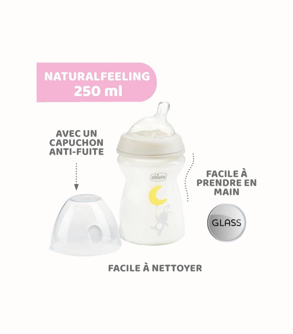 Ge ditt barn en naturlig, trygg och bekväm matningsupplevelse med Chicco Natural Feeling Anti-kolik Babyflaska. Den här 250 ml glasflaskan är utvecklad för att efterlikna den naturliga känslan av amning och underlätta växlingen mellan bröst och flaska. Perfekt redan från födseln!