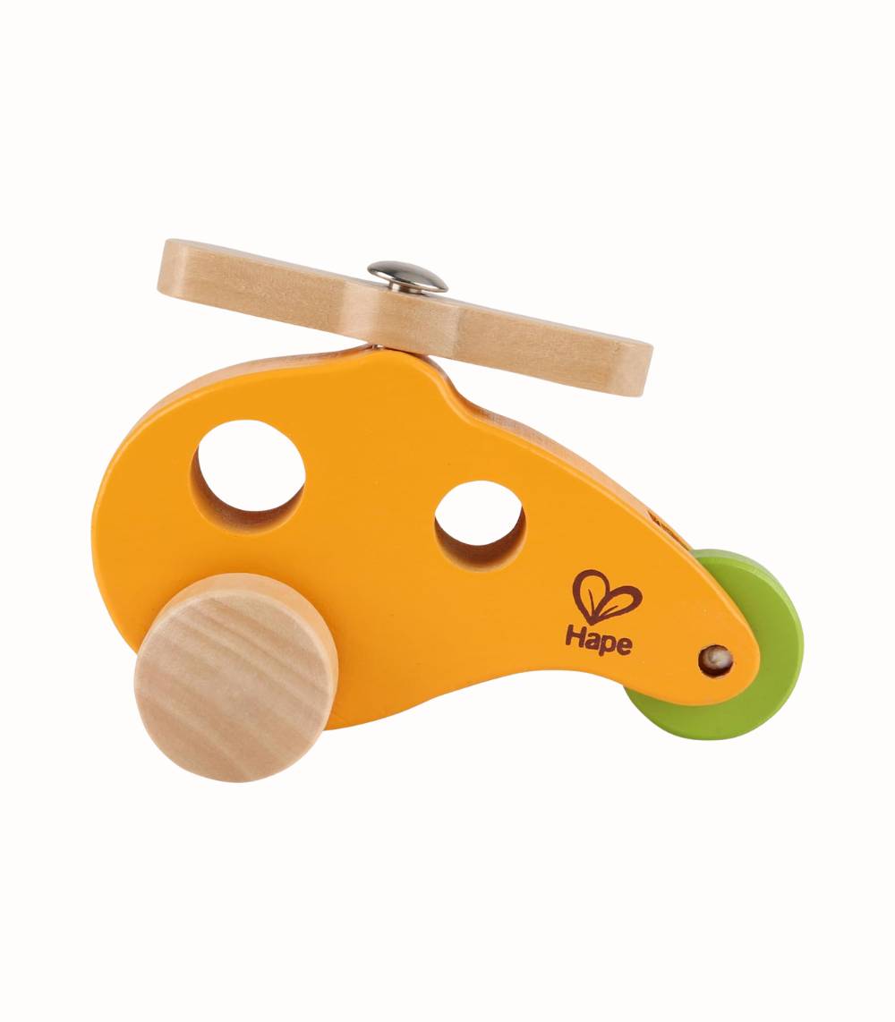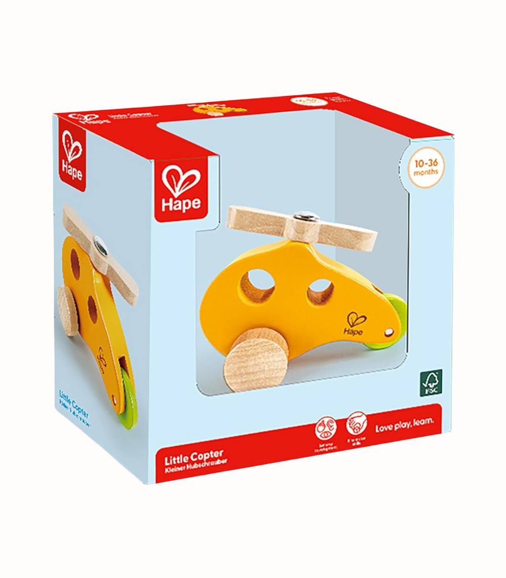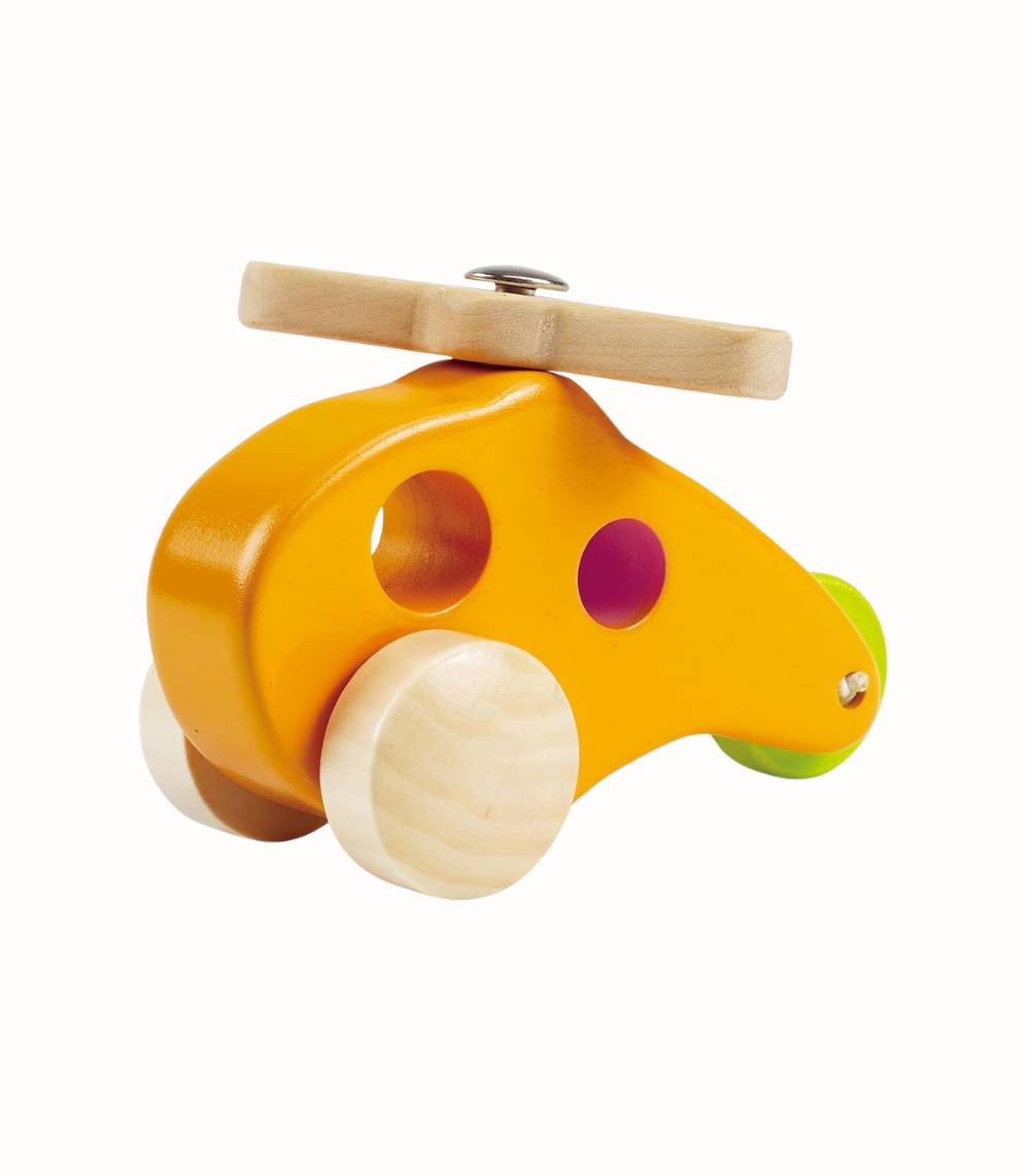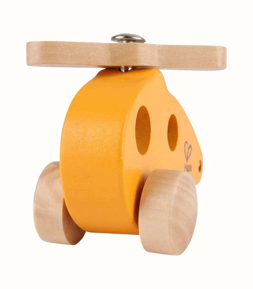 En färgglad trähelikopter med rörlig propeller och smidiga hjul – perfekt för nyfikna små händer från 10 månader och uppåt. Stimulerar barnets motorik, fantasi och tidiga rörlighet.