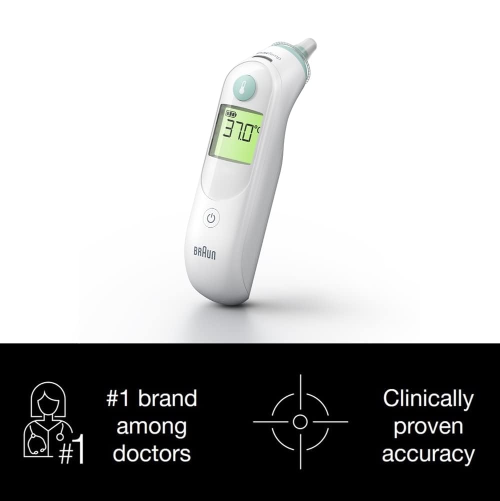 Smidig infraröd örontermometer för snabb och exakt temperaturmätning på bara 1 sekund. Perfekt för både spädbarn och vuxna, med akustisk feberindikator som gör mätningen enkel att tolka. Praktisk och kompakt design för trygg användning i hemmet.
