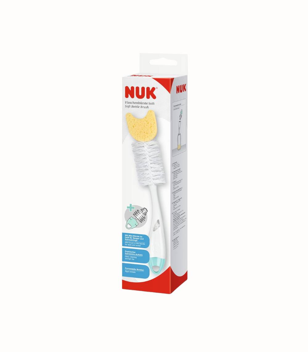 Håll barnets flaskor och nappar skinande rena med NUK 2-i-1 Flaskborste Twist. Den här smart designade rengöringsborsten har en flexibel borstdesign med styva borststrån som effektivt tar bort mjölkrester och gröt från flaskor. I handtaget sitter en praktisk, avtagbar sugborste för att enkelt rengöra nappar och små flaskdelar.