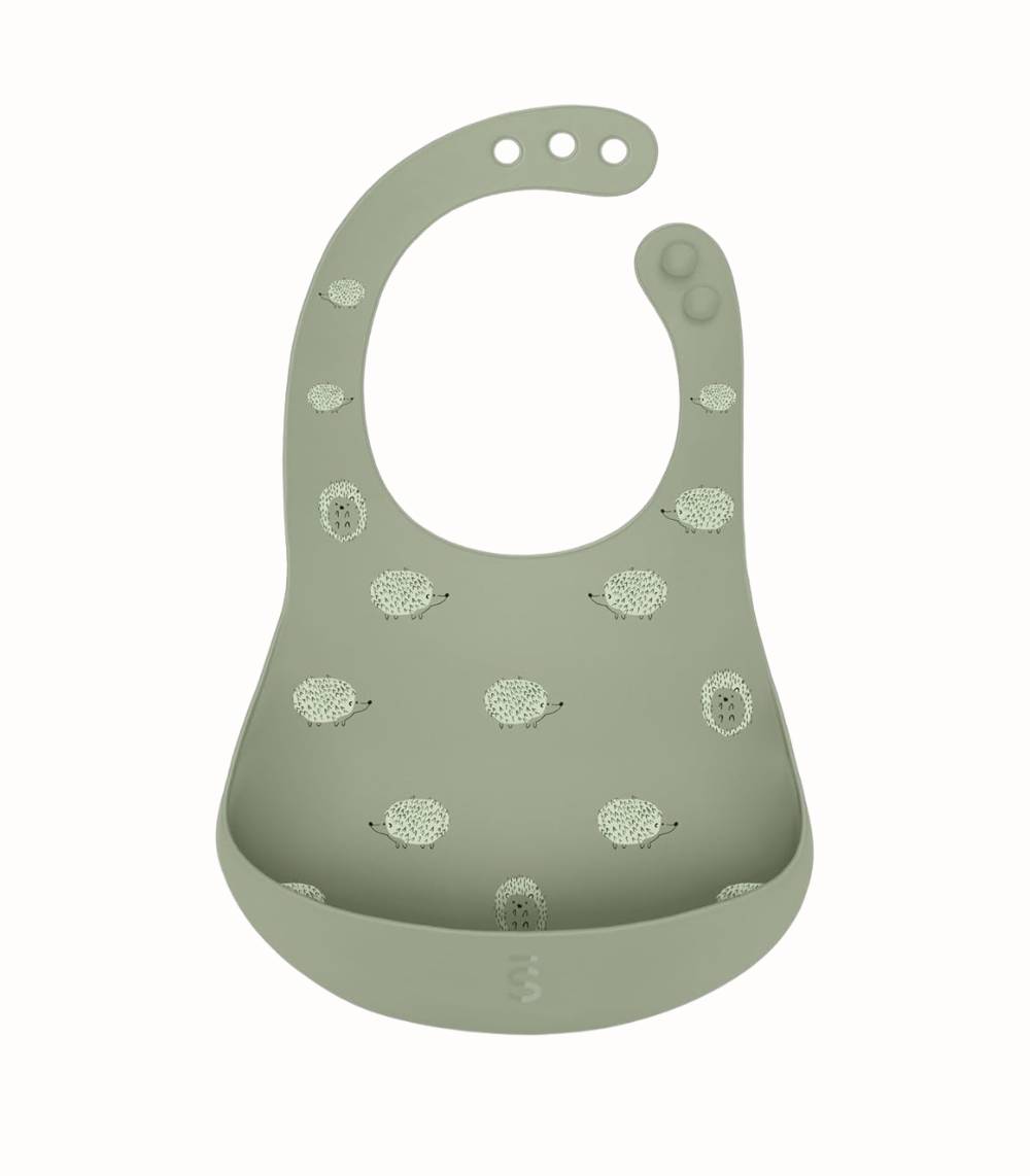 Praktisk och vattentät silikonhaklapp med rullbar design som gör det enkelt att ta med. Den har en justerbar hals för perfekt passform och en smidig smulficka som fångar upp matbitar. Lätt att rengöra under kranen eller i diskmaskin. Perfekt för små barn som vill lära sig äta själva – skyddar kläderna från spill och fläckar!