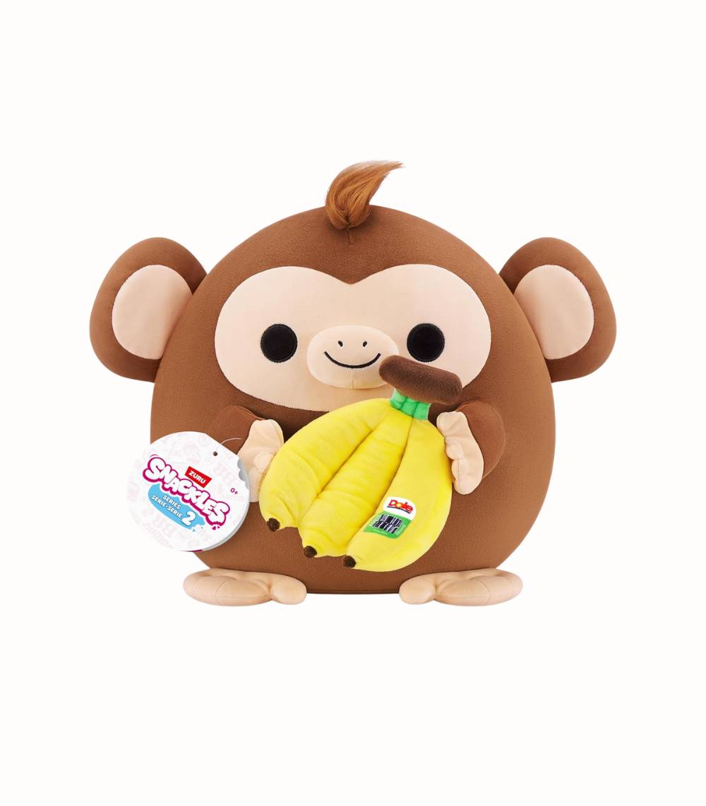 Upptäck Snackles Monkey (Dole, Banana) – en supermjuk och färgglad plyschleksak på 20 cm. Den perfekta storleken för kramar och lek, tillverkad i ultramjuk plysch med charmig design. Samla alla 10 unika Snackles och lär känna varje karaktärs historia med medföljande kort.