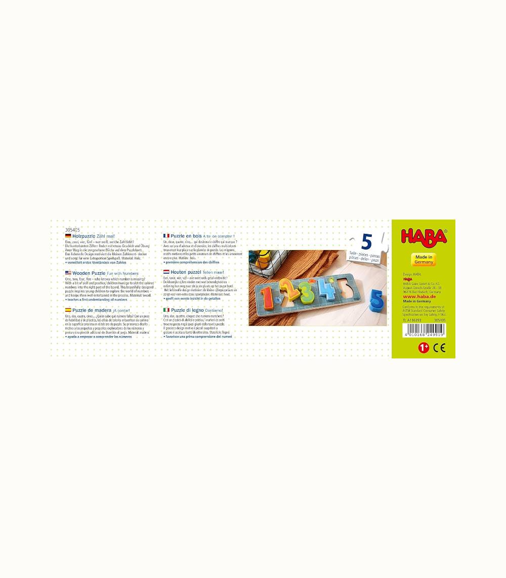 Ett färgglatt träpussel med 6 bitar som introducerar små barn till nummerigenkänning från 12 månader. Pusslet stimulerar finmotorik och hjälper till att utveckla barnets första förståelse för siffror på ett lekfullt sätt. Robust och säkert material gör det till en perfekt start i pusselvärlden.