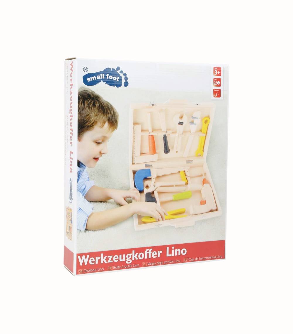 Ge små hantverkare en rolig start med denna verktygslåda i trä med 12 leksaksverktyg. Perfekt för motorikträning och fantasifull lek. Verktygen förvaras smidigt i den robusta väskan – lätt att bära och ta med!